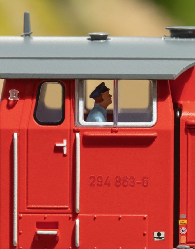 Exklusiv für mhi-Händler erscheint die BR 294 in aktuellen Zustand der Epoche VI. Das digitale Modell (Art. 39900) besitzt viele zusätzliche technische Raffinessen, wie zum Beispiel einen in Fahrtrichtung drehbaren Lokführer, beidseitige Telex-Kupplungen, Imitate der automatischen Kupplungen und viele Licht- und Geräuschfunktionen. Passend zur Lok werden zwei Güterwagensets angeboten die landwirtschaftliche Geräte transportieren.