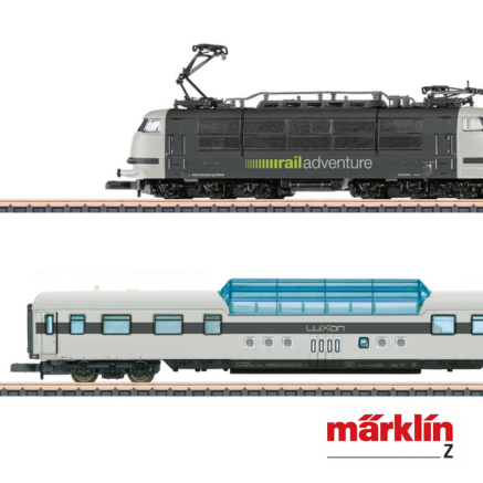 Zugpackung des exklusiven Luxuserlebnis auf Schienen der Fa. Railadventure. Das Set besteht vorbildgerecht aus der Lokomotive der Baureihe 103 und einem Aussichtswagen mit Glaskanzel der Bauart SRmz.